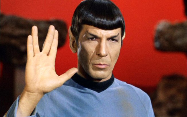 Na imagem o ator Leonard Nimoy como Spock fazendo sua famosa saudação “Vida longa e próspera”