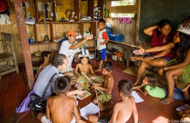 Na Imagem: Professora Davina Almeida da Silva, em 2015, quando dava aulas dentro da sala de casa para crianças indígenas, pois a aldeia ficava a uma grande distância da cidade.