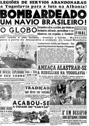 No dia 22 de março de 1941, há 71 anos, o vapor brasileiro Taubaté era atacado pela Luftwaffe perto da costa egípcia, resultando na primeira vítima brasileira da Segunda Guerra Mundial, o conferente José Francisco Fraga, morto por uma rajada de metralhadora, que também deixou 12 tripulantes feridos. O Taubaté estava transportando uma carga de batatas, lã e vinho quando foi atacado pela força aérea alemã, que primeiro tentou bombardear o cargueiro, sem sucesso, e depois passou a metralhar o navio. Uma das ironias do ataque é que o Taubaté, que era de propriedade da Companhia de Navegação Lloyd Brasileira, era de origem alemã, sendo construído em 1905 no estaleiro Bremen Vulkan. O ataque foi o primeiro contra alvos brasileiros depois da declaração de guerra de Getúlio contra as potências do Eixo. Durante o conflito foram atacados, ao todo, 35 navios com bandeiras brasileiras, causando um total de 1.081 mortos e 1.686 feridos, vítimas do nazifascismo que o Brasil lutou bravamente durante o período em que esteve em guerra contra o Eixo. O Taubaté operou até 1954 quando encalhou e naufragou no Recife.
