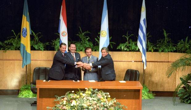 No dia 26 de março de 1991 há 29 anos, os presidentes de Argentina, Brasil, Paraguai e Uruguai assinavam o Tratado de Assunção, acordo que consolidou a criação de uma área de livre trânsito e livre comércio entre os países do Cone Sul da América do Sul, o Mercosul, ou Mercosur, em castelhano, língua oficial dos nossos hermanos. O bloco é um dos maiores parceiros econômicos do Brasil, tanto em volume de importações quanto de exportações, sendo responsável por fatia considerável da balança externa brasileira. O Mercosul marca um longo caminho que os países sulamericanos percorreram em busca de integração, ainda que incompleta, pois divide o continente em duas porções: a América do Sul platina, os países do Cone Sul, e a América do Sul andina, os países que fazem são entrecortados pelos Andes. Assim como a União Europeia, o Mercosul ventilou a criação de uma moeda única para os seus países membros, proposta vista com resistência, principalmente por Brasil e Argentina.