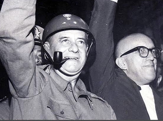 Na imagem, o general Olímpio Mourão Filho confraterniza com o banqueiro e na época governador de Minas Gerais, José de Magalhães Pinto (UDN) em abril de 1964. Camões há de relevar, pois se os tempos mudam, algumas vontades permanecem.