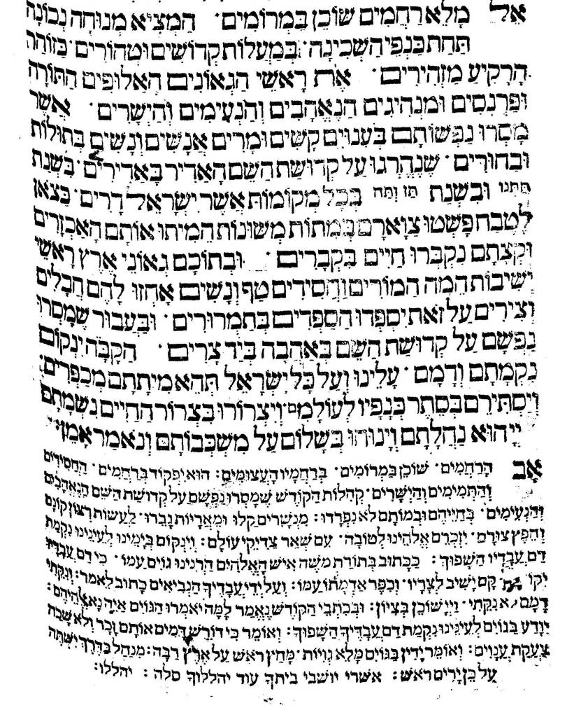 Na imagem reprodução da prece hebraica El Male Rahamim, Deus da misericórdia pelas comunidades massacradas, oração tradicional judaica na Alemanha.