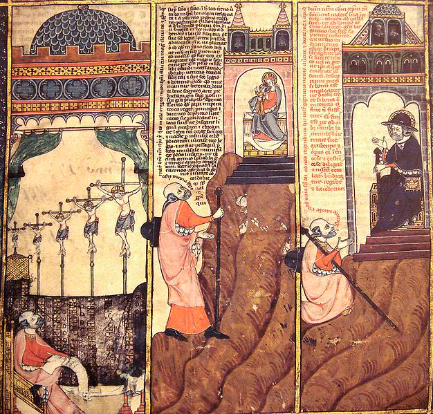 Na imagem ilustração presente no manuscrito A Vida de Raimundo Lúlio, datado do século 14, depositado na Badische Landesbibliothek, Cod. St. Peter perg. 92, fol. 1v.