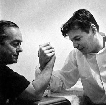 Na foto, vemos um momento de descontração entre Vinicius de Moraes e Tom Jobim, dois grandes artistas da MPB.