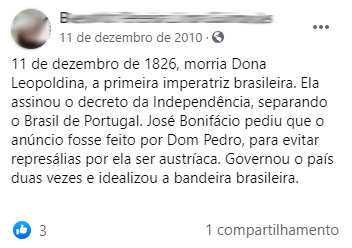 Uma rápida pesquisa pelos meios digitais revelou que, nos últimos dez anos, houve um volume considerável de postagens destacando a assinatura do “decreto da independência” por Leopoldina. Não conseguimos identificar exatamente como essa história começou, mas as primeiras postagens mencionando o tal decreto nas redes sociais parecem ter surgido em 2010 (veja os prints abaixo).