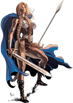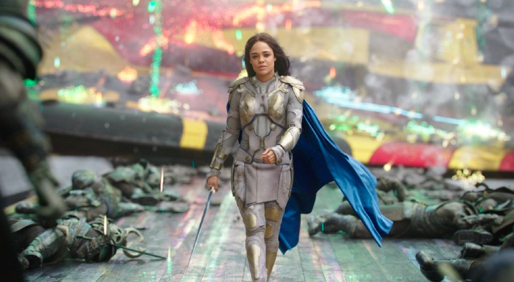 - A atriz estadunidense Tessa Thompson caracterizada como a personagem Valquíria no longa Thor: Ragnarok (2017)