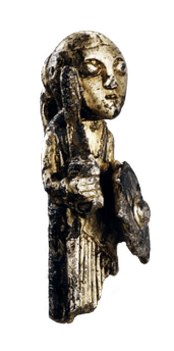 - Foto do artefato conbhecido como A Valquíria de Hårby, uma pequena escultra de prata datada da Era Viking e que se encontra depositada no Museu Nacional da Dinamarca, em Copenhague (Dinamarca)
