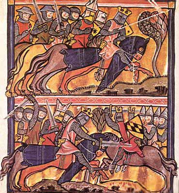 - Iluminura do séc. XIII presente em manuscrito Vita Karoli Magni, de Eginhardo, que retrata as Guerras Saxônicas. Esse manuscrito se encontrada depositado na Stiftsbibliothek, em St. Gallen, Suíça.