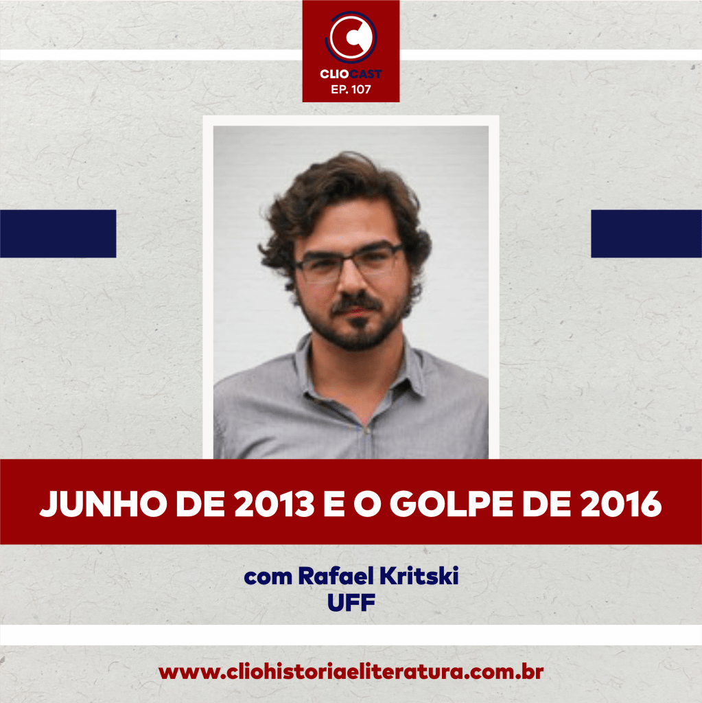 Salve, galera! Nosso Cliocast 107 está no ar. Hoje conversamos com o professor Rafael Kritski (doutorando em Ciência Politica pela UFF e professor de Sociologia da Seeduc- RJ) sobre Junho de 2013 e o Golpe de 2016, rememorando os movimentos históricos que sacudiram o Brasil na década passada. Ouçam, compartilhem!
